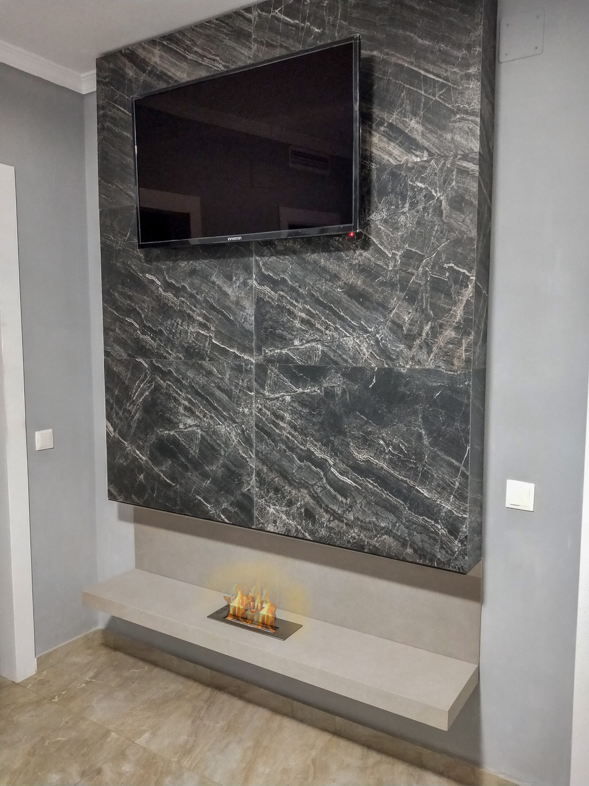 Para dominar este material, conocido por ser uno de los más duros y resistentes pero también uno de los más exigentes de trabajar, creamos un taller especializado. Lo dotamos de maquinaria de corte y pulido específica y desarrollamos técnicas especiales de pegado y refuerzo necesarias para el porcelánico, desde resinas especiales hasta refuerzo con fibra de vidrio. Este compromiso nos permite hoy fabricar con precisión variedad de elementos, con una amplia gama de soluciones constructivas y decorativas. Incluso dominamos técnicas de grabado y creación de texturas antideslizantes personalizadas.